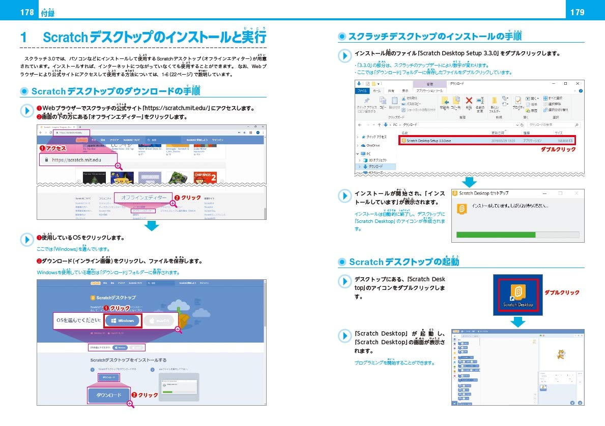 好評の『スクラッチプログラミングの図鑑』のスクラッチ3.0対応版です。ブラウザから公式サイトにアクセスして使うオンライン版と、Scratchデスクトップをインストールして使うオフライン版の両方に対応しています。スクラッチは、小学生からのプログラミング教育が本格化しているなか、はじめての言語として人気です。子供にプログラミングを学ばせたい親や、教材として使用したい先生に注目されています。本書は「まなびのずかん」シリーズとして、スクラッチによるゼロからのプログラミングをビジュアルふんだんの図鑑形式で解説。小学生でも始められる基礎的なところから、大人もうなる本格的なプログラミングまで扱っています。また、数学、国語、社会、音楽など教科をテーマにした章も設けており、先生や親がプログラミング教育を見据えた教材として使用することもできます。総ルビとなっており、本書1冊で永くご使用いただけます。