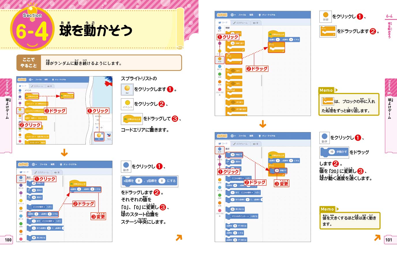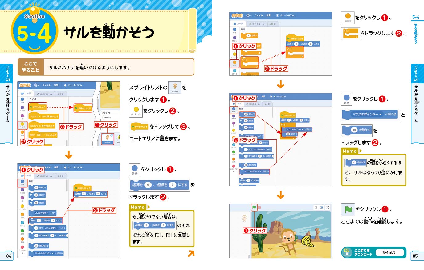 5章から7章では、スクラッチの基本的なプログラミングについて解説しています。スクラッチでよく使うアルゴリズムについて学ぶことができます。